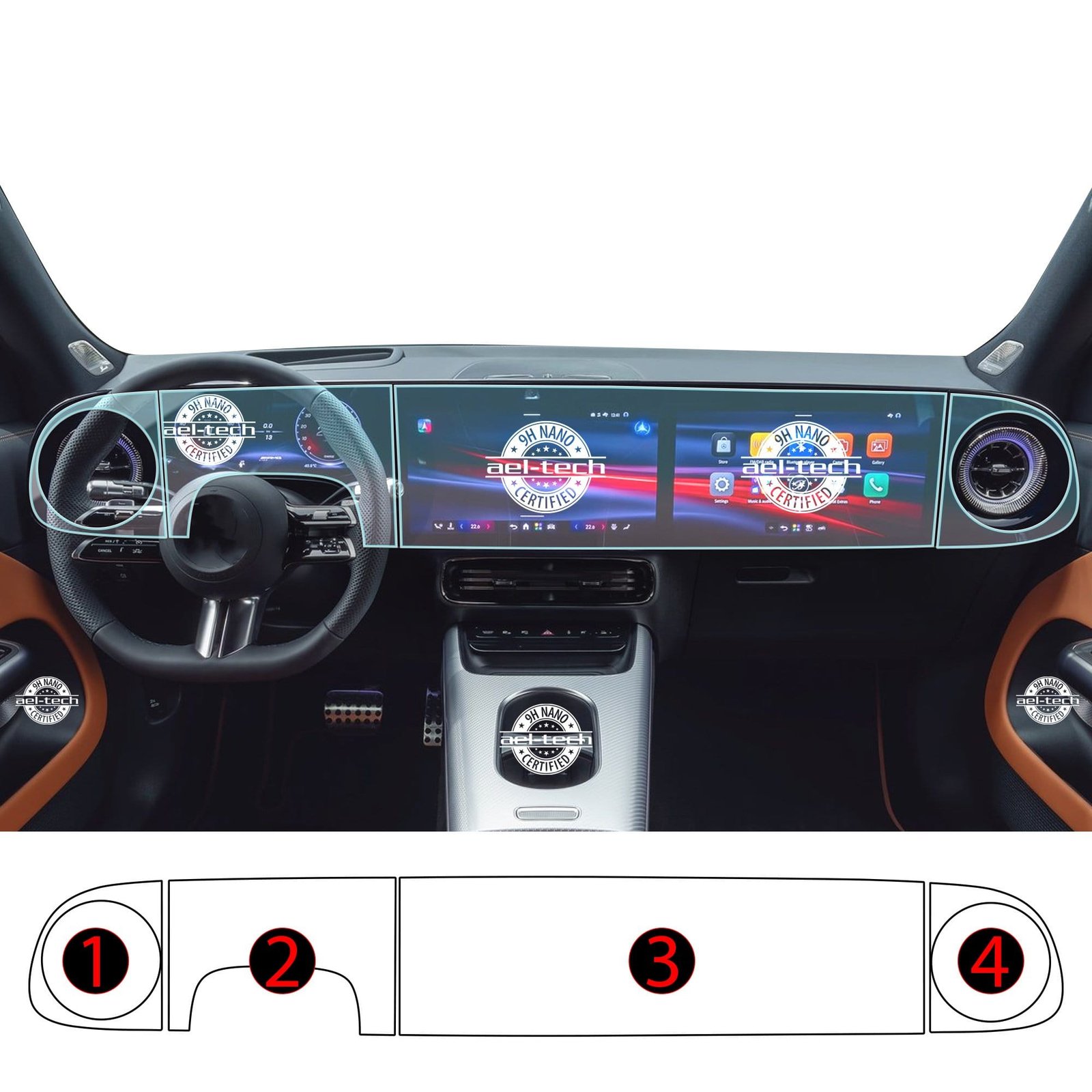 Mercedes GLB Uyumlu Dijital Gösterge ve Navigasyon 9H Nano Ekran Koruyucu 4’lü Set 2026-2027